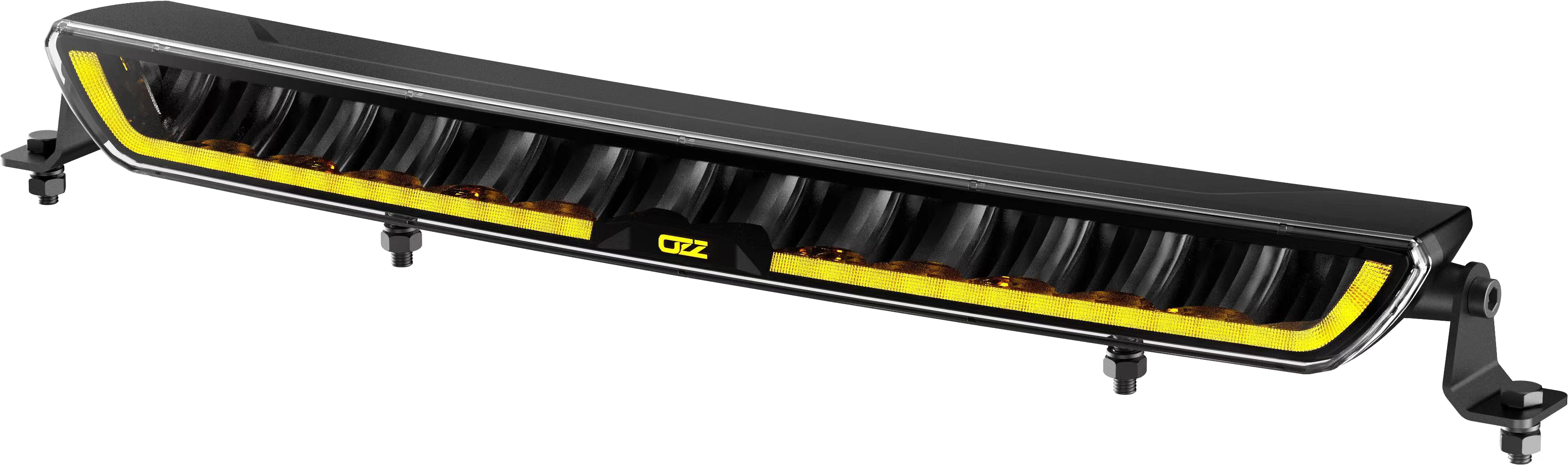 Ledbar fjernlys serie enten uten parklys - eller med dynamisk oppstart av gult eller hvitt parklys. Buet eller rett hus i aluminium. Rett 1003 mm med parklys, 20000 lumen.